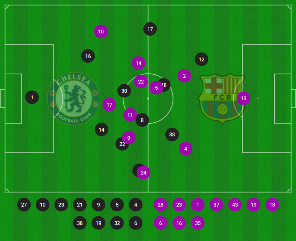 巴萨的传控体系众所周知。尽管邦帕斯托麾下的切尔西通常主导球权(尤其主场),但此役刻意放任对手在非威胁区域持球。数据显示,罗马努的球队虽拥有58%控球率,但关键数据与蓝军持平:双方均完成9次射门且各3次射正。切尔西更在对手禁区触球数(29-18)与传中数(14-12)上占据上风。